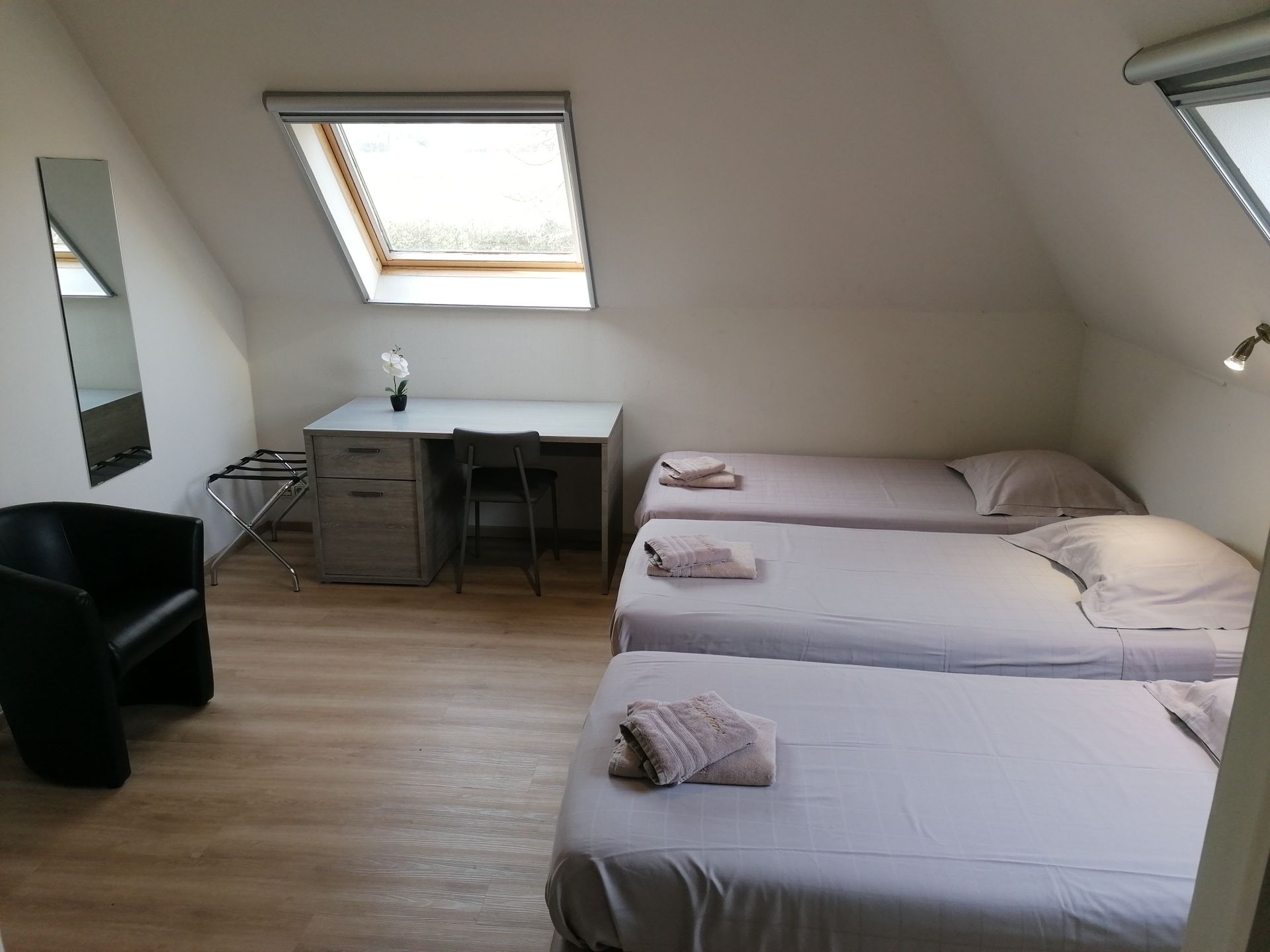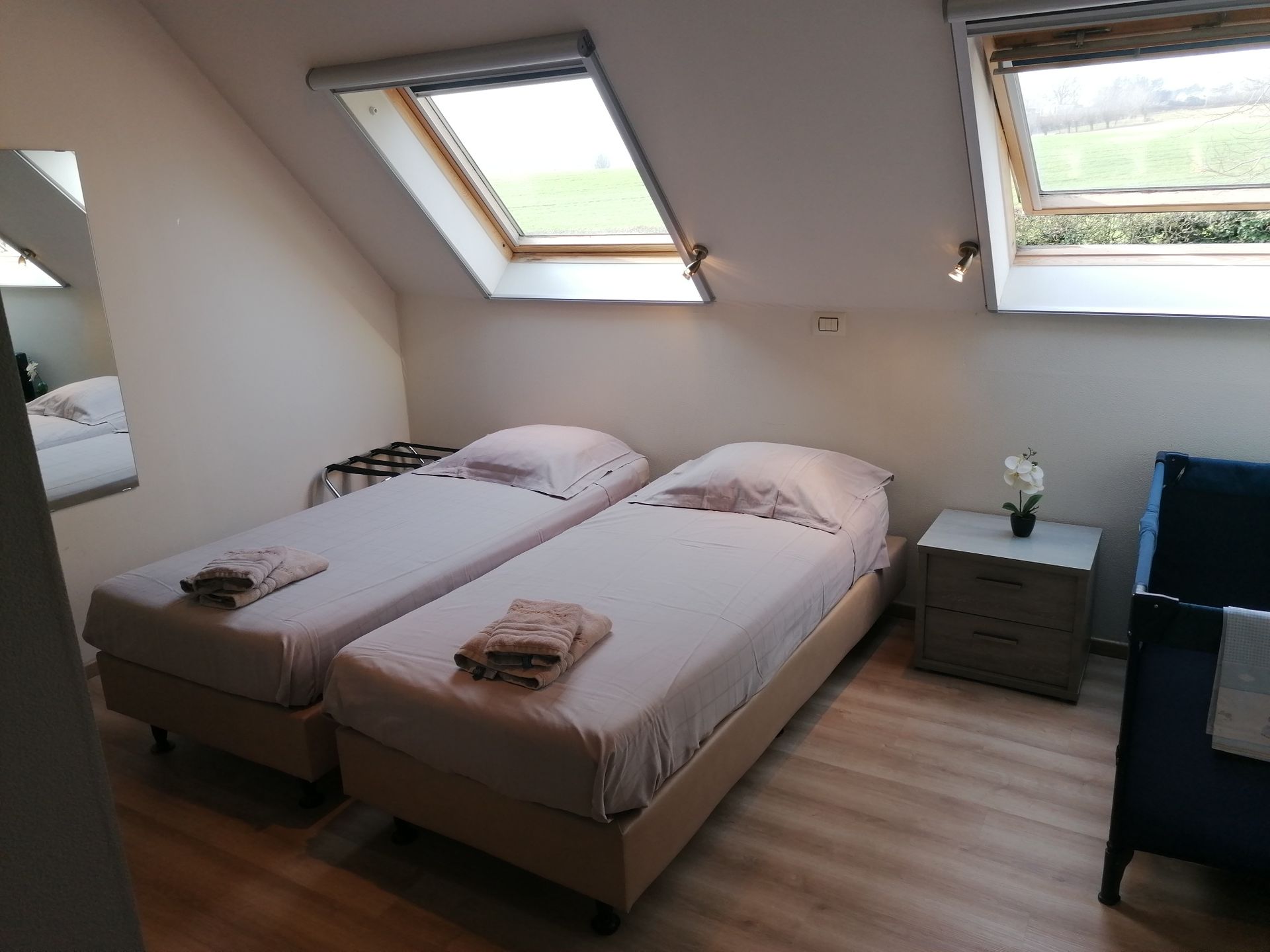 Omvat 2 éénpersoonsbedden , met mogelijkheid voor een 3de bed of kinderbedje